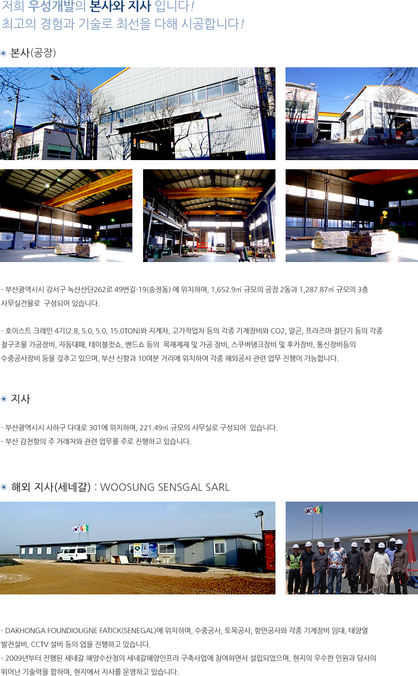 Address : 부산광역시 강서구 녹산산단262로 49번길-19(송정동)Tel : 051-262-8010~1 Fax : 051-262-8066 E-mail : cso7901@hanmail.netwww.woosungdevel.com 사업자번호: 603-06-27168 우성개발 대표 최순열 Copyright ⓒ woosungdevel.com All rights reserved.